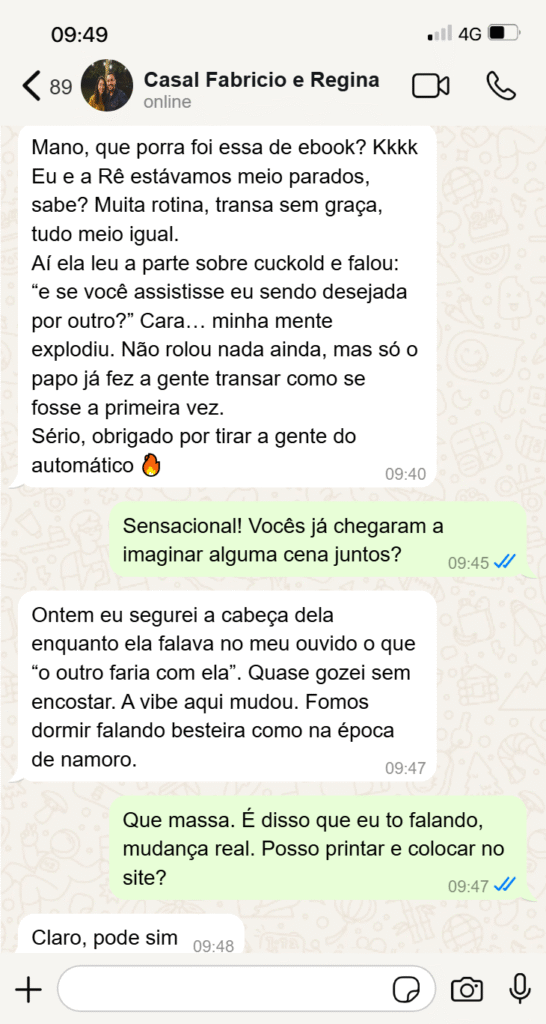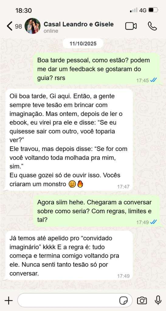 Um relacionamento onde o desejo é valorizado, a intimidade é explorada e vocês têm liberdade real para viverem como quiserem — juntos.